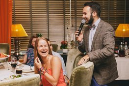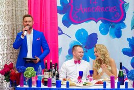 Если Вы не хотите ломать голову над тем, как развлекать многочисленных гостей во время банкета, то Вам необходим профессиональный тамада на свадьбу. Такой человек способен развеселить любую публику! На нашем портале представлены портфолио свадебных ведущих Вашего города. Страница каждого ведущего дополнена контактными данными, описанием услуг, фотографиями с проведённых праздников. Также Вы сможете найти отзывы других молодожёнов о работе того или иного свадебного ведущего.